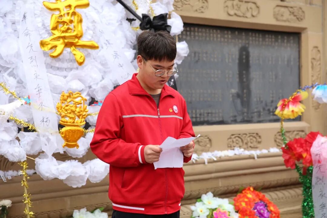 党员教师代表、团员学生代表致辞,向为了国家民族得解放、为了人民群众谋福祉而英勇献身的革命先烈们,致以深切的怀念和哀思。